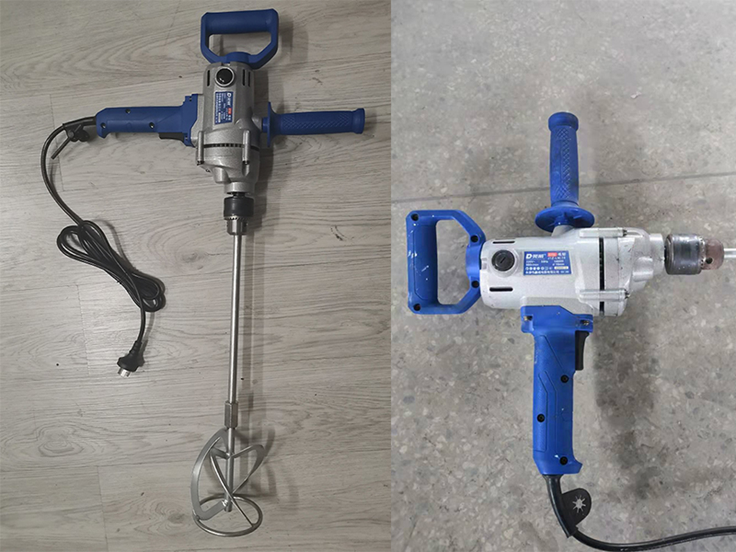 4、喷涂前先用螺旋叶片钻杆的手电钻把涂料搅拌均匀: