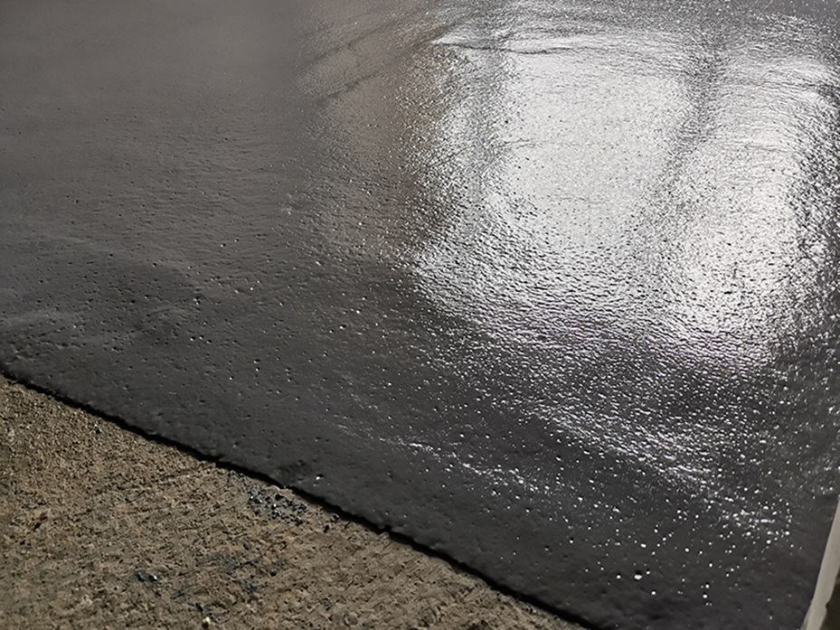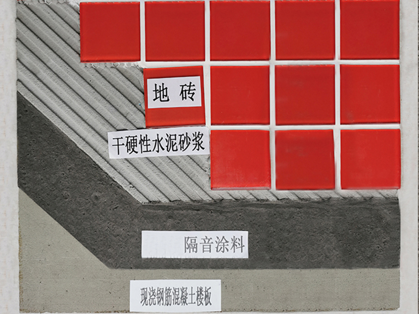 7、楼板隔音涂料喷涂完毕后,地面楼板干透后的效果,以及涂料干透后的表面细节展示,如下图所示: