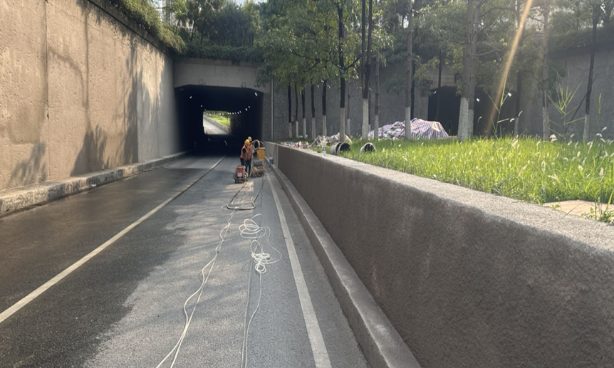 (4)在拱部颜色的喷涂方面,先施工防火涂料至设计厚度后,加喷一道罩面漆。
